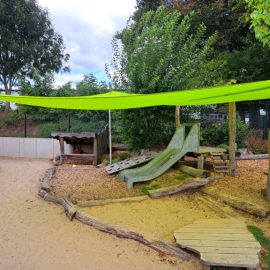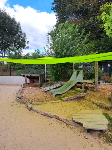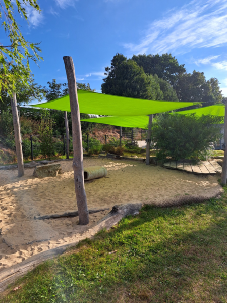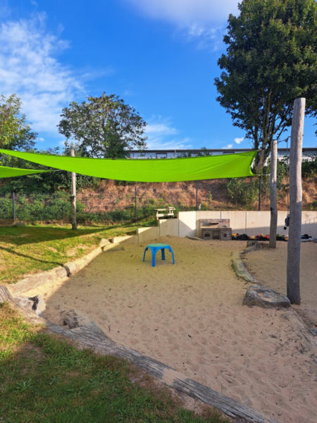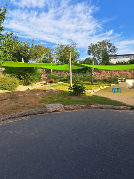 Am 21.08.2025 war es endlich soweit - unsere neuen Sonnensegel wurden montiert. Jetzt kann wieder ganz viel im Schatten gespielt werden.