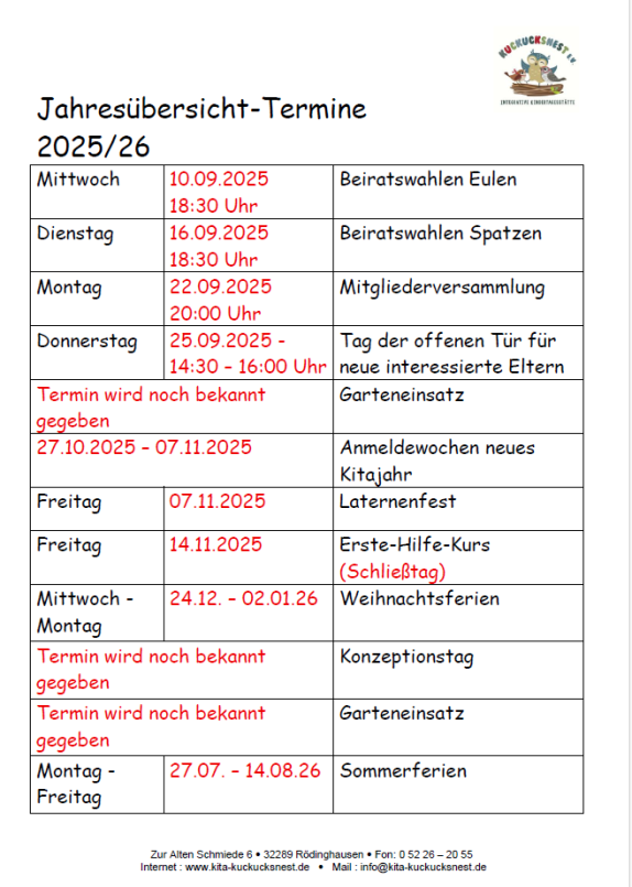 Die Anmeldewochen für das Kindergartejahr 2026/2027 finden in diesem Jahr vom 27.10.2025 bis zum 07.11.2025 statt.